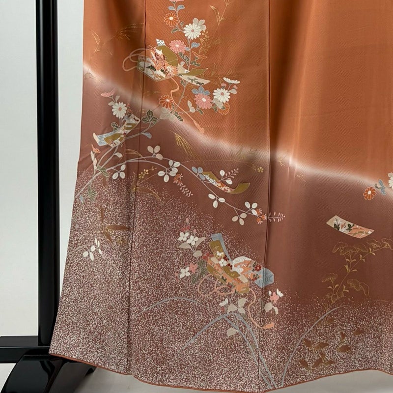 【訪問着】 赤系 赤茶 秀品 C 約160cm~約169cm 裄丈65cm (M)size 袖丈48cm 7990-9980 二万以下