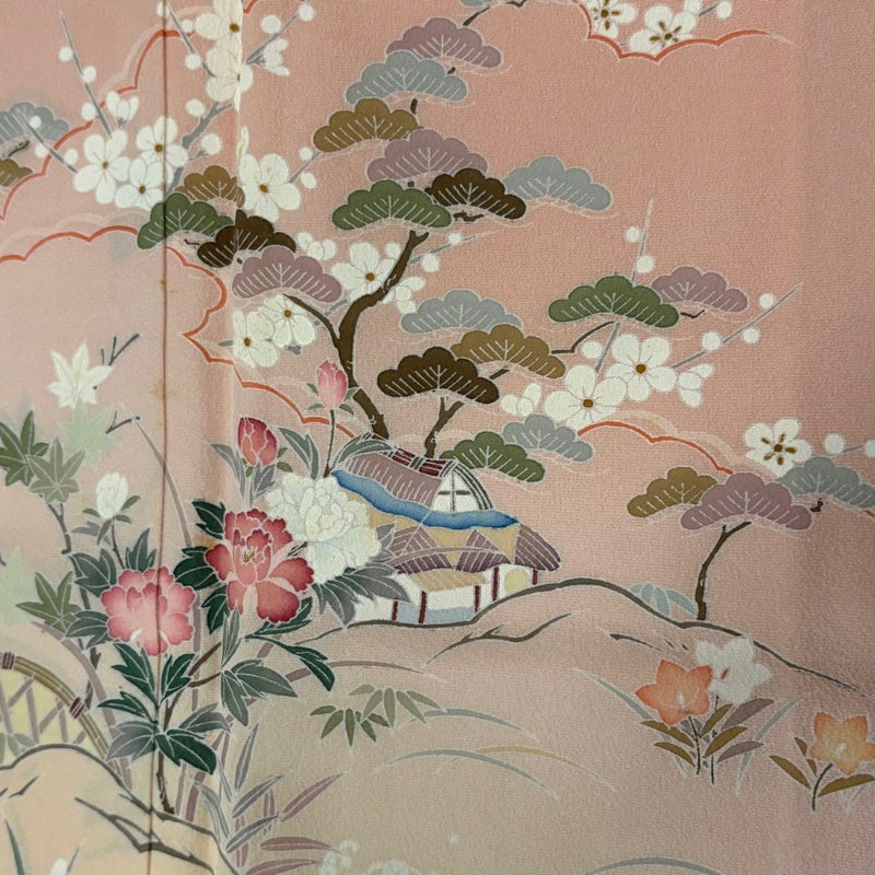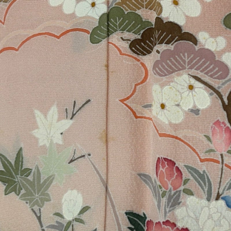 【訪問着】 赤系 ピンク 秀品 B 約160cm~約169cm 裄丈63cm-64cm (M)size 袖丈50cm-60cm 7990-9980 二万以下
