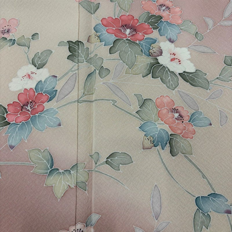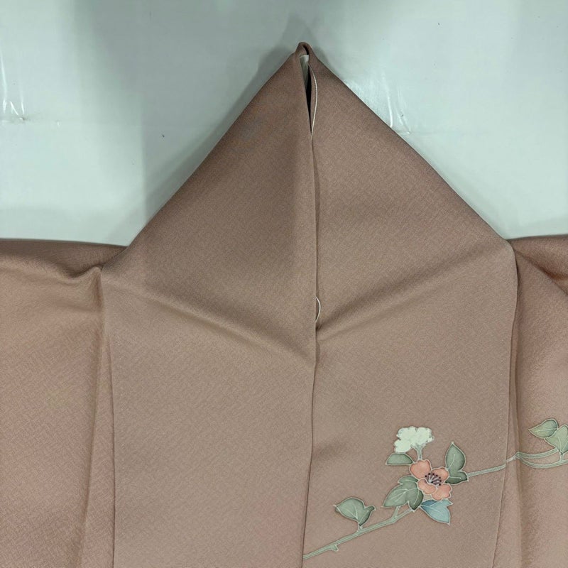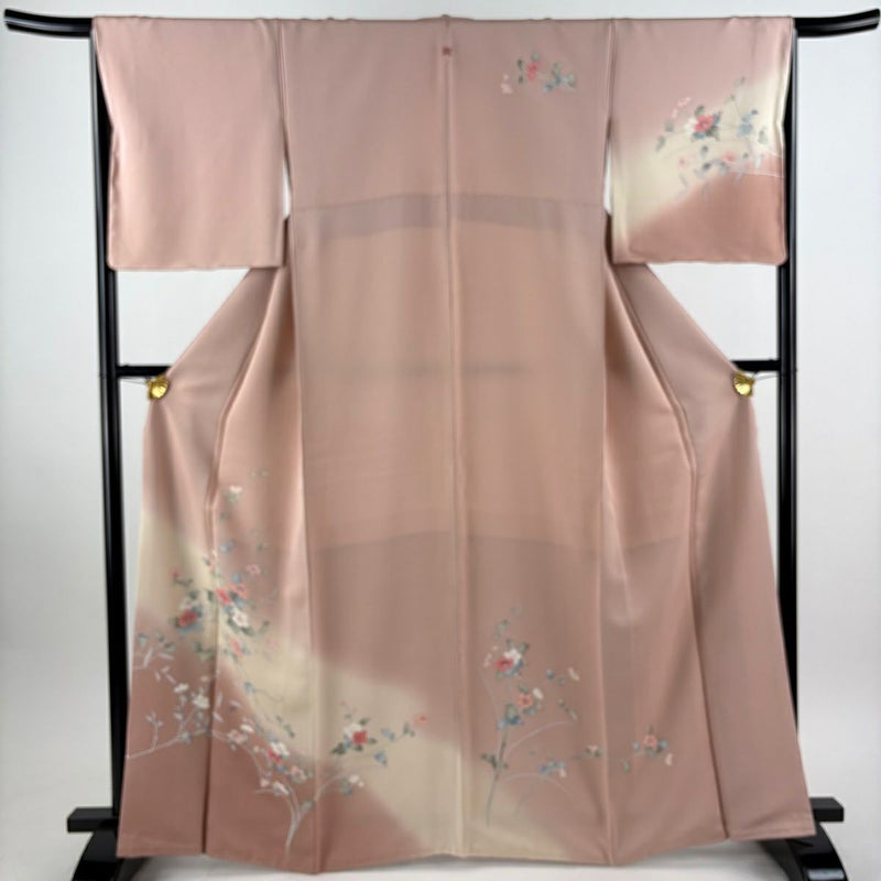 【訪問着】 赤系 ピンクベージュ 秀品 A 約160cm~約169cm 裄丈66cm (M)size 袖丈49cm 9990-29990 美品 二万以下