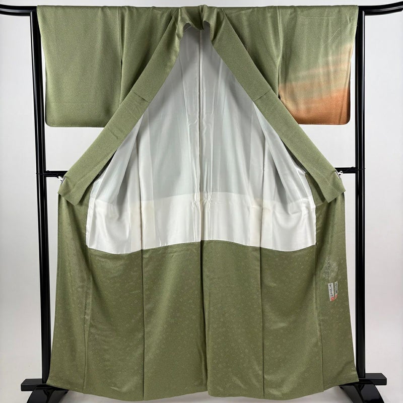 【訪問着】 緑系 よもぎ色 秀品 A 約160cm~約169cm 裄丈63cm-64cm (S)size 袖丈48cm 9990-29990 美品 二万以下