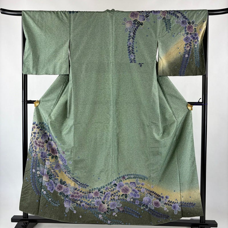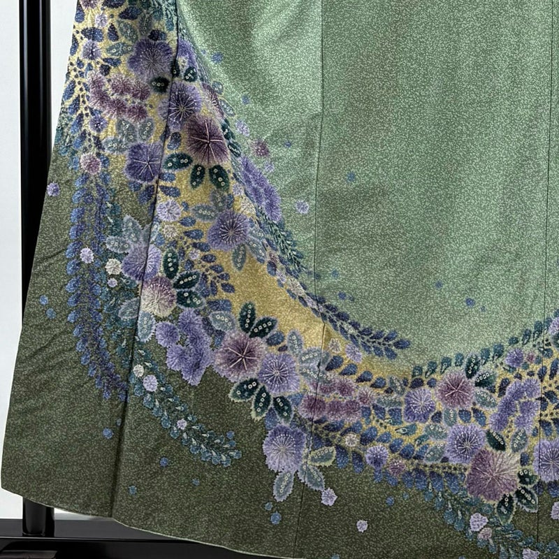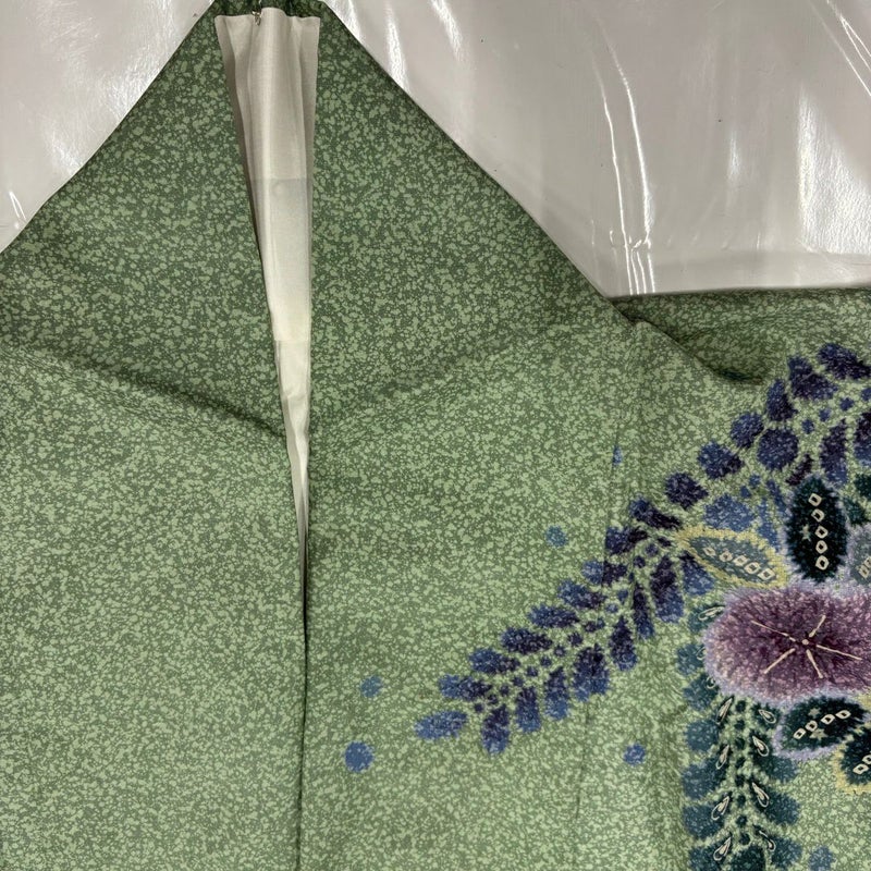 【訪問着】 緑系 薄緑 名品 A 約150cm~約159cm 裄丈67cm-68cm (M)size 袖丈48cm 9990-29990 美品 二万以下