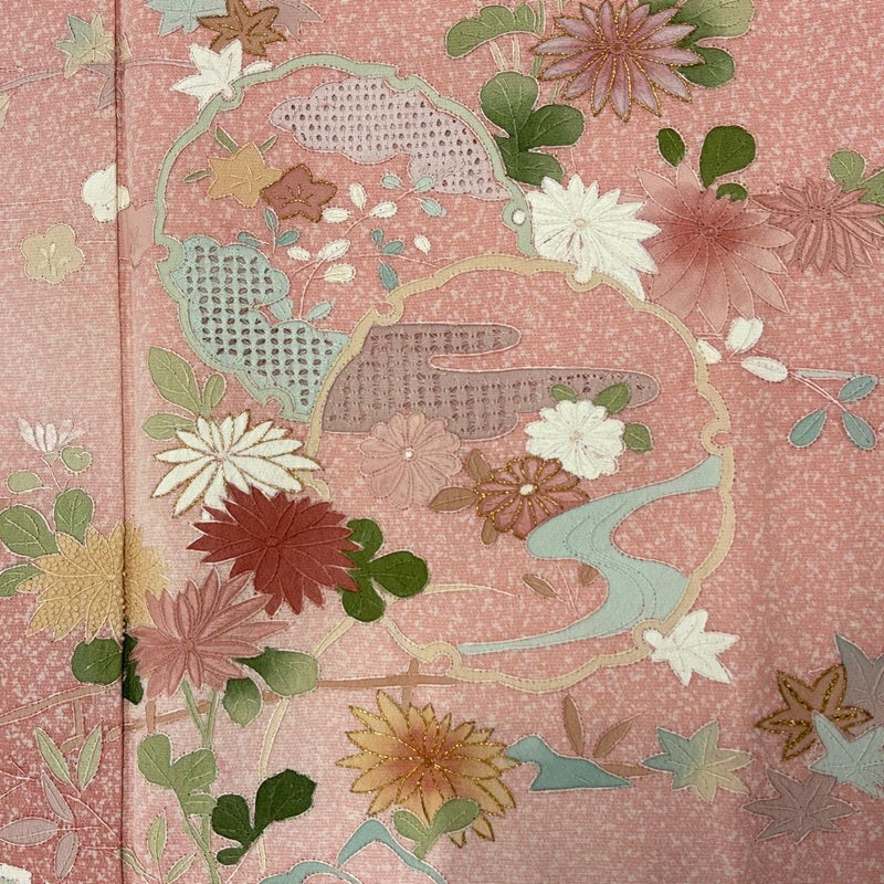 【着物ランク】秀品 【素材】正絹 【身丈】約157cm 【裄丈】約63.5cm 【袖丈】約48cm 【袖幅】約33cm 【前幅】約24.5cm 【後幅】約30cm 【サイズ】S 【着物仕立て】袷 【着用時期】10~5月 【状態ランク】ランクA 【着物着用シーン】披露宴、パーティー、お見合い、式典、茶会