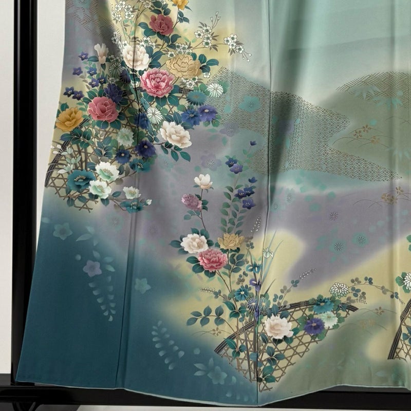 【訪問着】 緑系 薄緑 秀品 B 約150cm~約159cm 裄丈62cm以下 (S)size 袖丈48cm 7990-9980 二万以下
