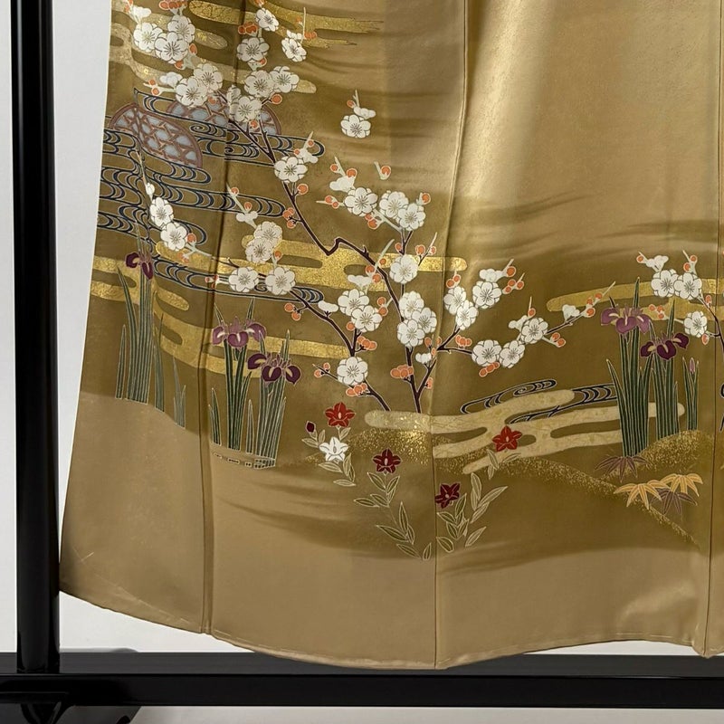 【着物ランク】秀品 【素材】正絹 【身丈】約156cm 【裄丈】約63cm 【袖丈】約50cm 【袖幅】約33.5cm 【前幅】約23cm 【後幅】約29cm 【サイズ】S 【着物仕立て】袷 【着用時期】10~5月 【状態ランク】ランクB 【着物着用シーン】披露宴、パーティー、お見合い、式典、茶会