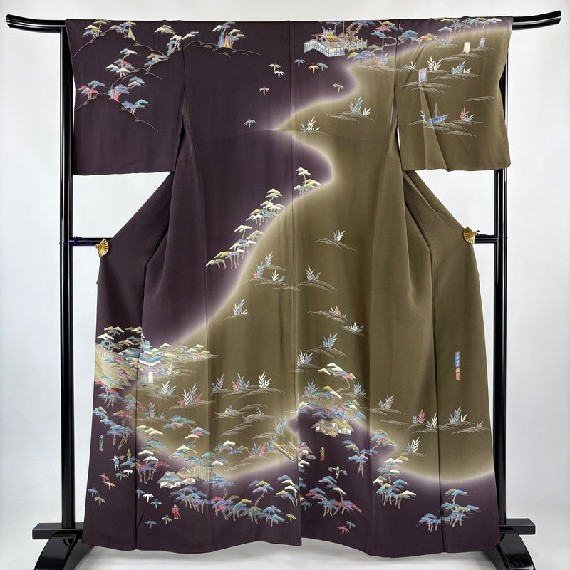 【着物ランク】逸品 【素材】正絹 【身丈】約161cm 【裄丈】約67.5cm 【袖丈】約48cm 【袖幅】約33.5cm 【前幅】約24cm 【後幅】約30.5cm 【サイズ】L 【着物仕立て】袷 【着用時期】10~5月 【状態ランク】ランクB 【着物着用シーン】披露宴、パーティー、お見合い、式典、茶会