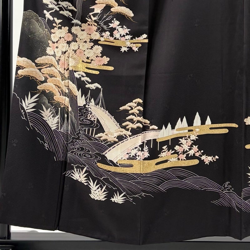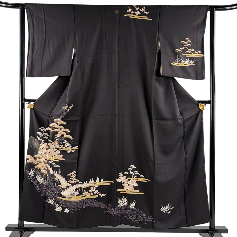 【訪問着】 黒系 墨色 秀品 B 約150cm~約159cm 裄丈62cm以下 (S)size 袖丈50cm-60cm 7990-9980 二万以下