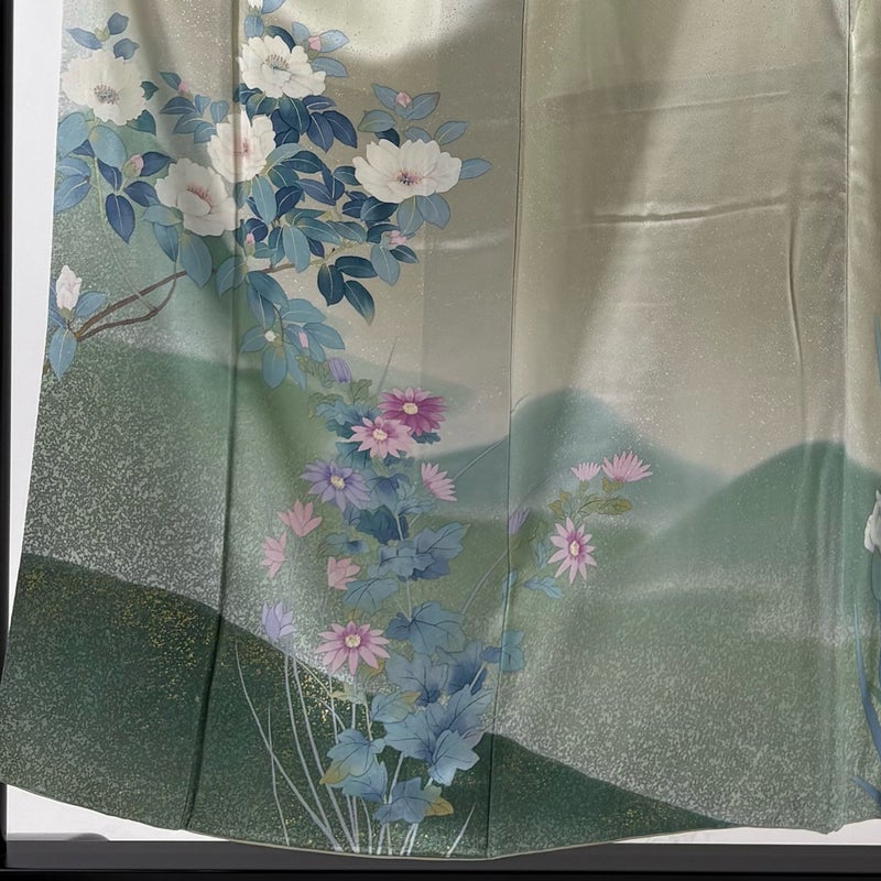 【訪問着】 緑系 薄緑 秀品 A 約150cm~約159cm 裄丈62cm以下 (S)size 袖丈50cm-60cm 9990-29990 美品 二万以下
