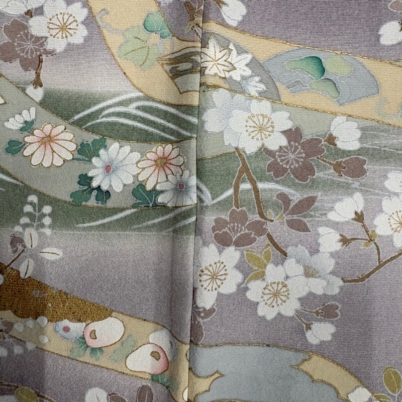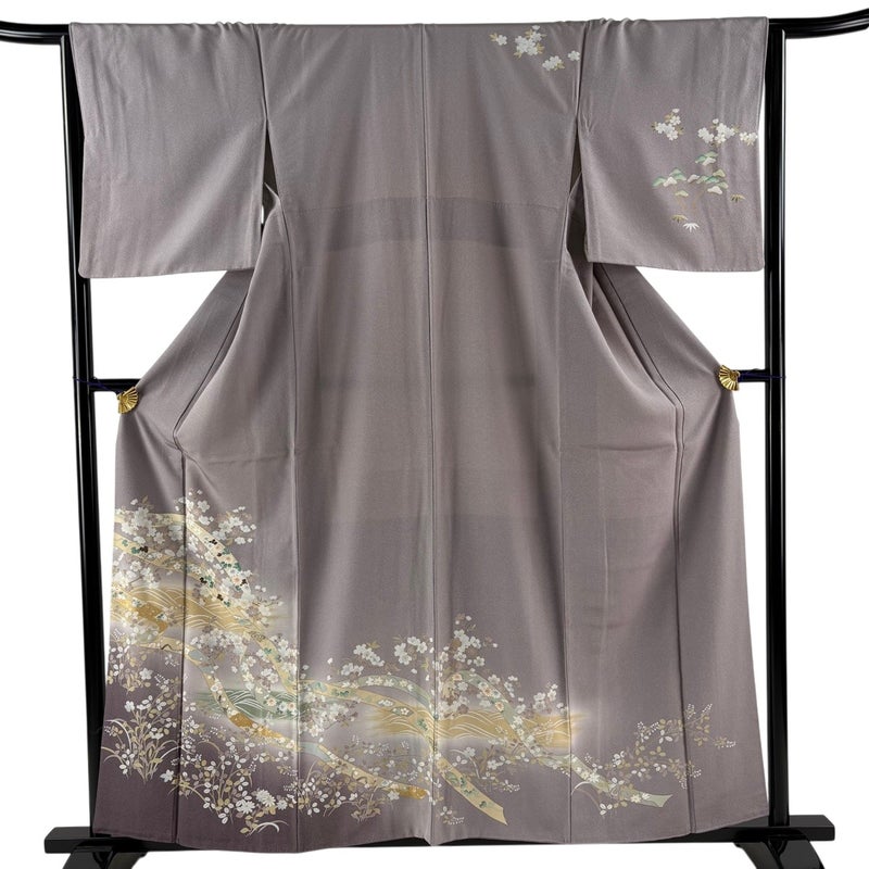 【着物ランク】秀品 【素材】正絹 【身丈】約159cm 【裄丈】約65cm 【袖丈】約48cm 【袖幅】約34cm 【前幅】約24.5cm 【後幅】約28cm 【サイズ】M 【着物仕立て】袷 【着用時期】10~5月 【状態ランク】ランクB 【着物着用シーン】披露宴、パーティー、お見合い、式典、茶会