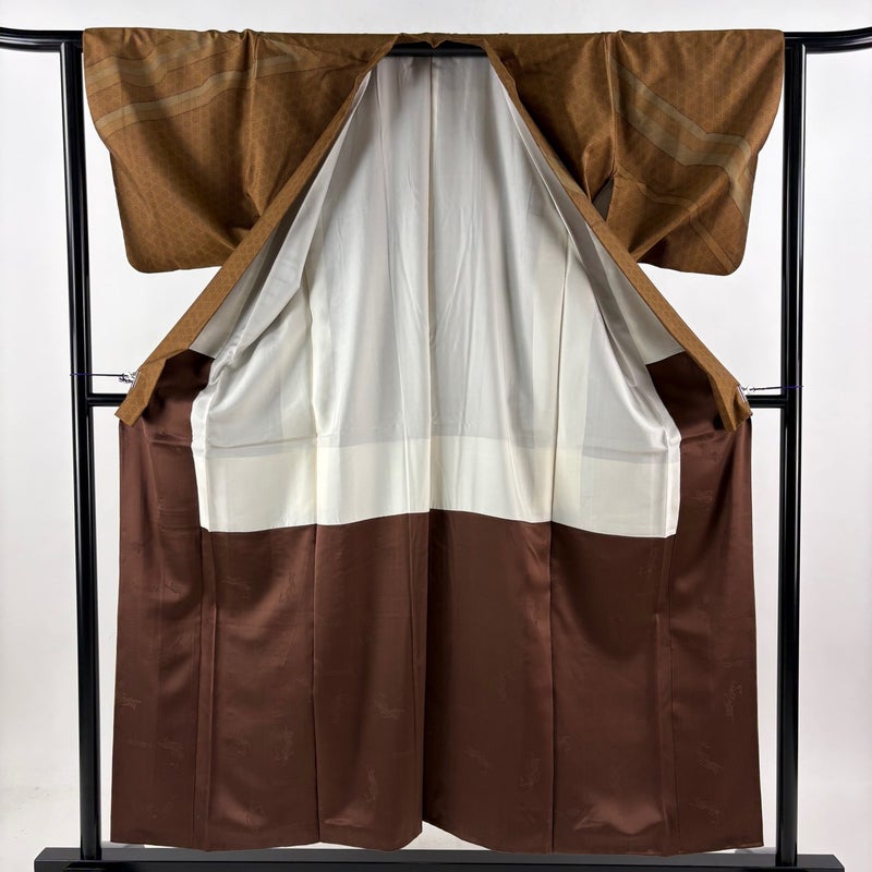 【訪問着】 茶系 茶色 秀品 A 約150cm~約159cm 裄丈63cm-64cm (S)size 袖丈46cm以下 9990-29990 美品 二万以下