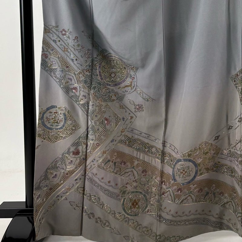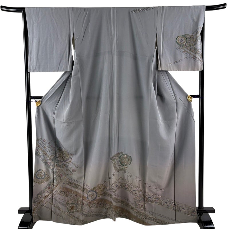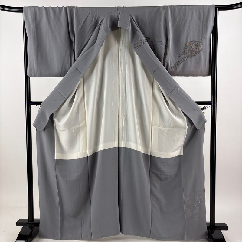 【訪問着】 灰色系 青灰色 秀品 C 約160cm~約169cm 裄丈66cm (M)size 袖丈48cm 7990-9980 二万以下