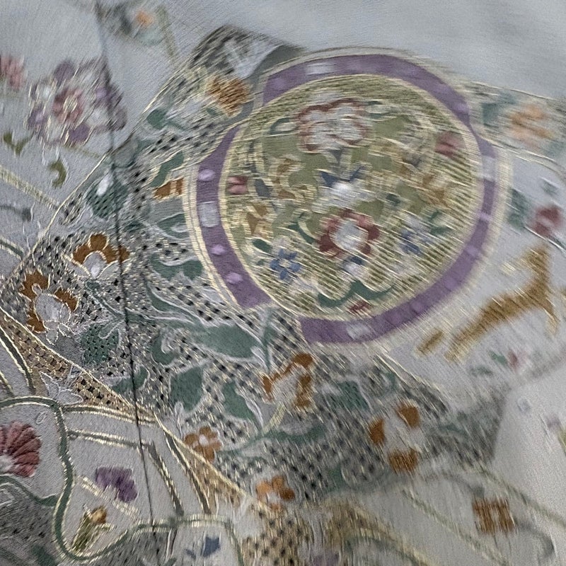【着物ランク】秀品 【素材】正絹 【身丈】約164cm 【裄丈】約66cm 【袖丈】約48cm 【袖幅】約34cm 【前幅】約25cm 【後幅】約30cm 【サイズ】M 【着物仕立て】袷 【着用時期】10~5月 【状態ランク】ランクC 【着物着用シーン】披露宴、パーティー、お見合い、式典、茶会