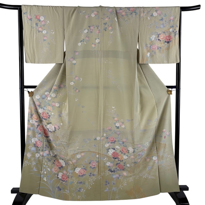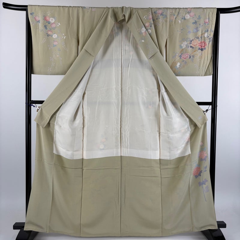 【訪問着】 灰色系 灰緑 秀品 C 約160cm~約169cm 裄丈67cm-68cm (M)size 袖丈48cm 4000-7980 二万以下