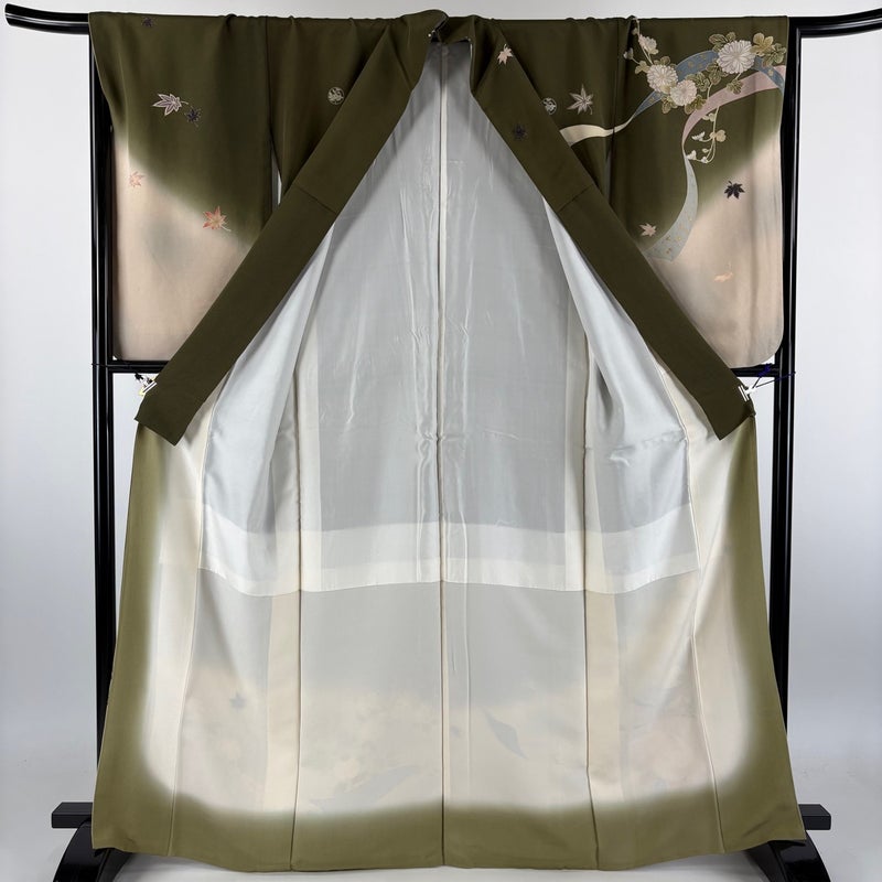 【訪問着】 茶系 茶緑色 秀品 C 約160cm~約169cm 裄丈67cm-68cm (L)size 袖丈61cm~90cm 7990-9980 二万以下