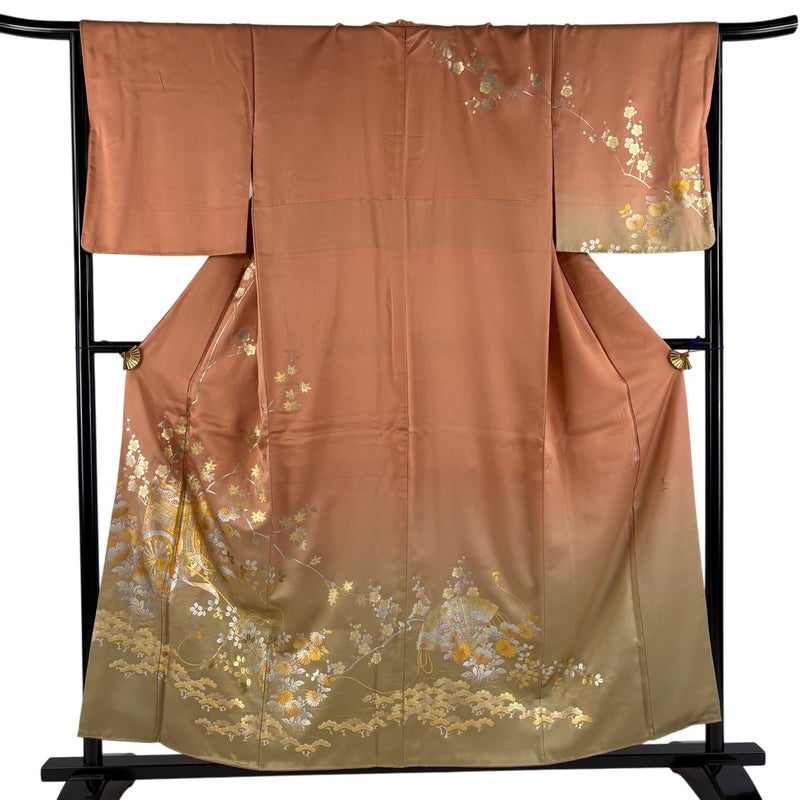 【訪問着】 赤系 サーモンピンク 秀品 C 約150cm~約159cm 裄丈65cm (M)size 袖丈48cm 7990-9980 二万以下