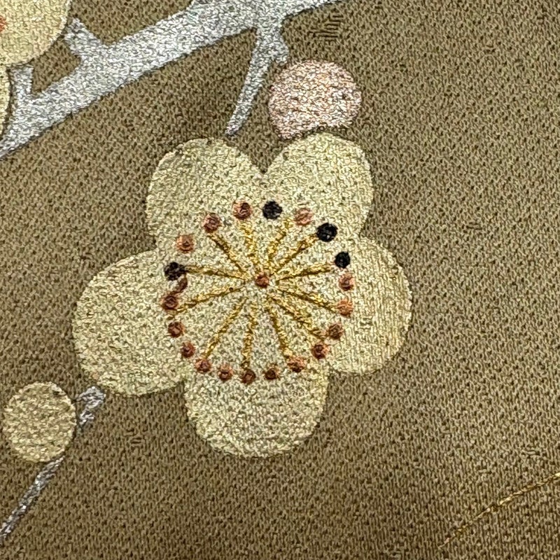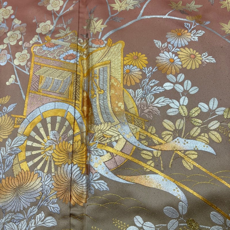 金彩友禅作家、和田光正の手がけた作品になります。 金彩の美しさがよく映える一品です。 気品たっぷりにお召し頂ける素敵な訪問着です。 上品な華やぎを求められるパーティーや、品格が求められるお席などにお使い頂けます。 ※身丈・裄丈の縫込みの長さは測っておりません。 上前所々にシミ、衿周りや両袖口中と左胸に汚れ、両衿にシワ、表地所々に金銀彩の変色がございます。 ご購入の際はその点ご留意ください。 ※なお、厳しく商品の状態確認を行っておりますが、記載の汚れ以外にも見落とし箇所がある可能性がある旨ご了承いただけますと幸いです。 沢山の商品の中からご覧いただき誠にありがとうございます。