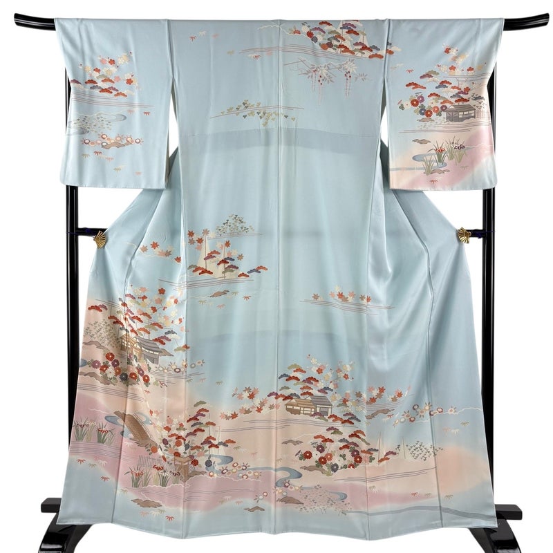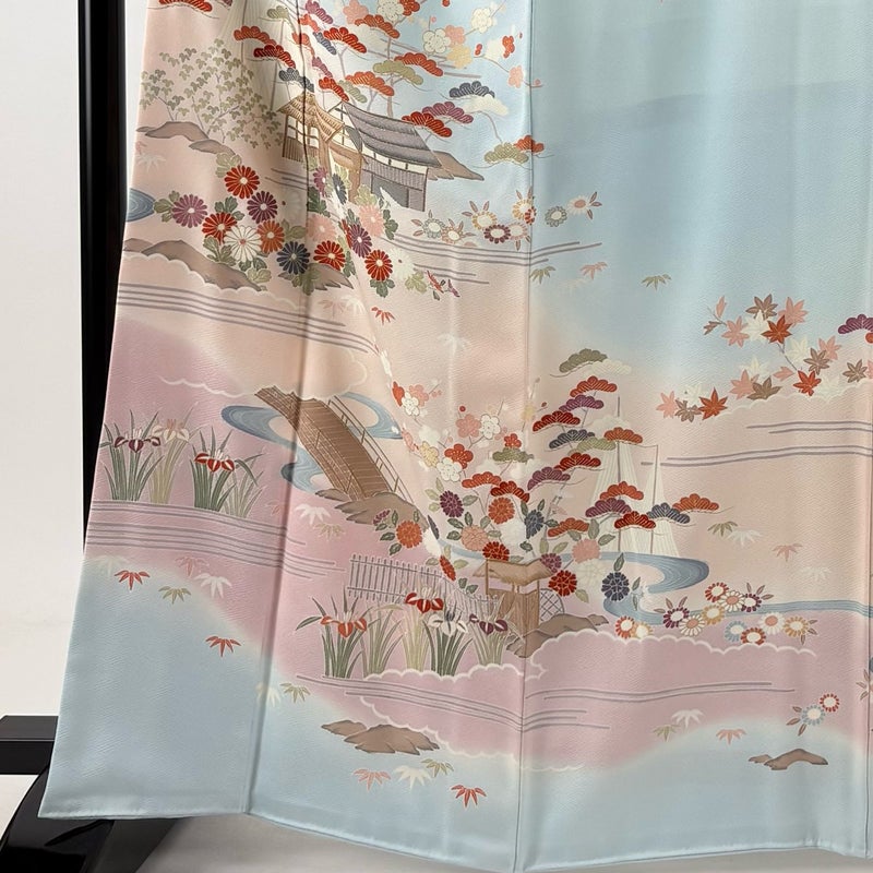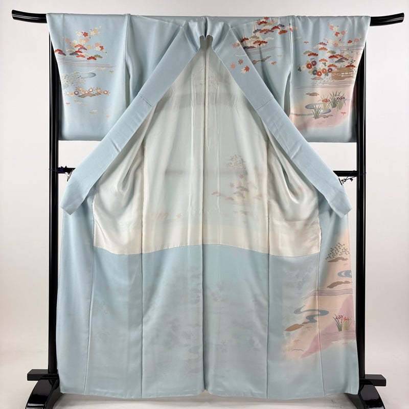 【訪問着】 青系 水色 秀品 B 約160cm~約169cm 裄丈69cm以上 (L)size 袖丈50cm-60cm 7990-9980 二万以下