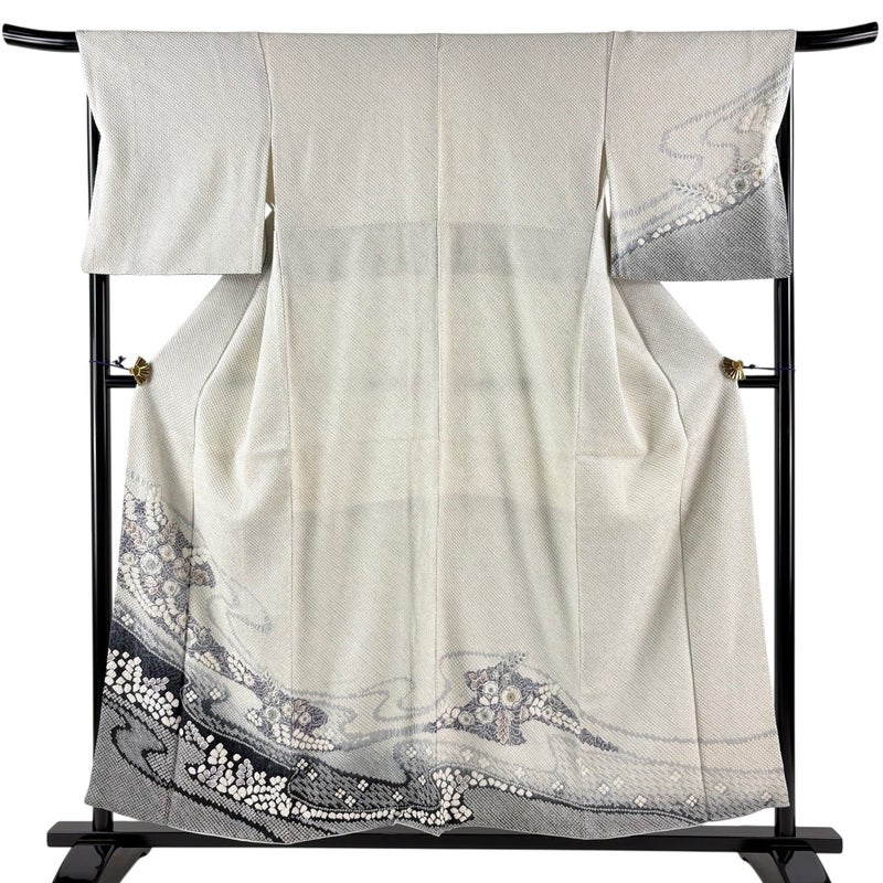 【訪問着】 灰色系 灰白 秀品 C 約150cm~約159cm 裄丈66cm (M)size 袖丈49cm 7990-9980 二万以下