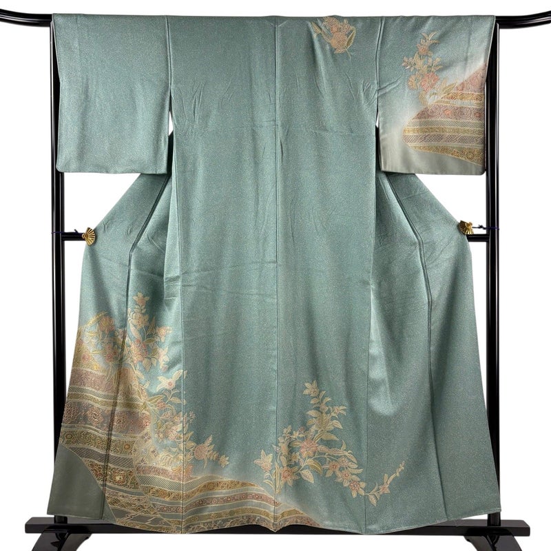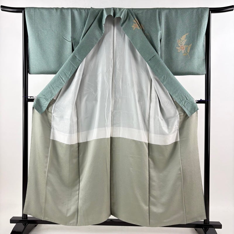 【訪問着】 緑系 薄緑 秀品 C 約150cm~約159cm 裄丈63cm-64cm (M)size 袖丈48cm 7990-9980 二万以下