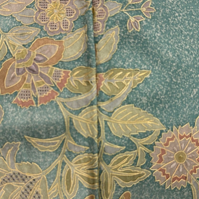 帯次第で幅広くお使いいただける素敵な訪問着です。 帯により格式を変える事の出来る印象のお着物は、様々に場面で活躍してくれることでしょう。 ※身丈・裄丈の縫込みの長さは測っておりません。 衿周りや両袖口中に汚れ、表地所々にシワがございます。 八掛にシミ、裏地両脇に汗シミ、裏地所々にシワがございます。 また、上前から後身頃にかけて柄のズレがございます。 ご購入の際はその点ご留意ください。 ※なお、厳しく商品の状態確認を行っておりますが、記載の汚れ以外にも見落とし箇所がある可能性がある旨ご了承いただけますと幸いです。 沢山の商品の中からご覧いただき誠にありがとうございます。