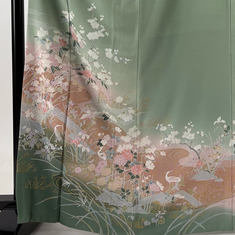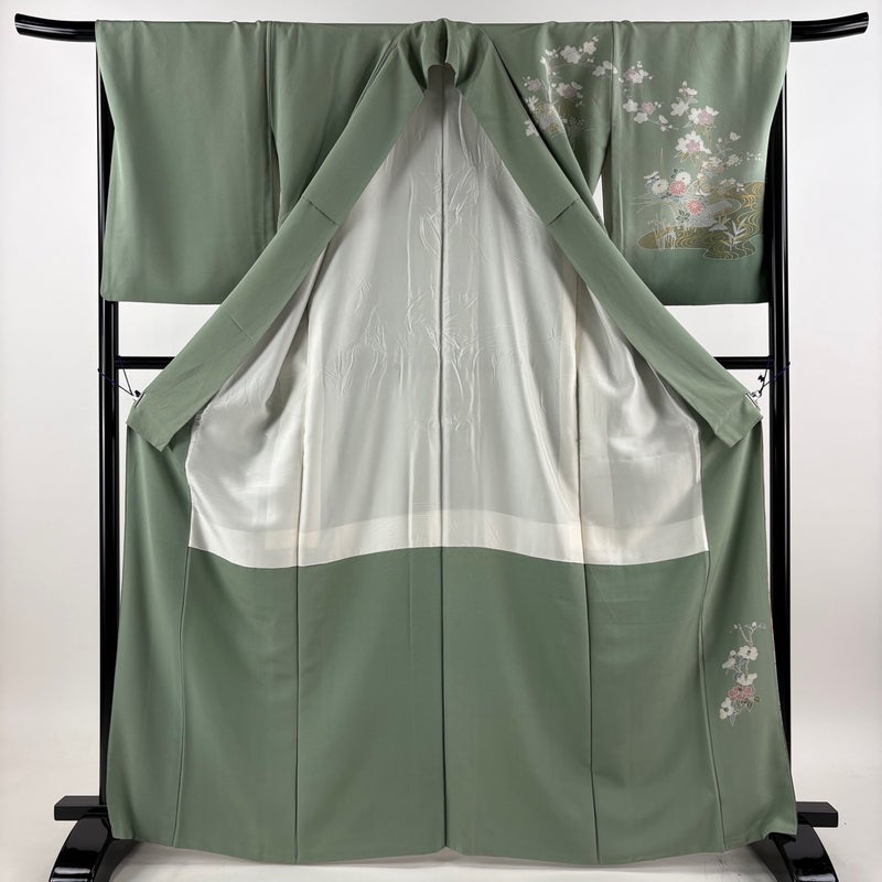 【訪問着】 灰色系 灰緑 秀品 B 約160cm~約169cm 裄丈67cm-68cm (L)size 袖丈50cm-60cm 7990-9980 二万以下