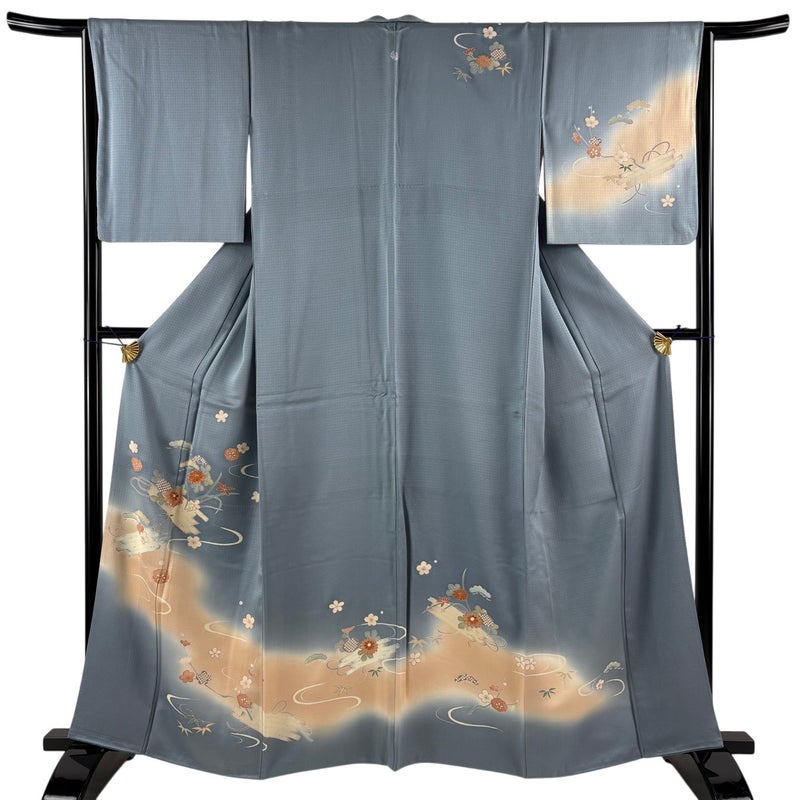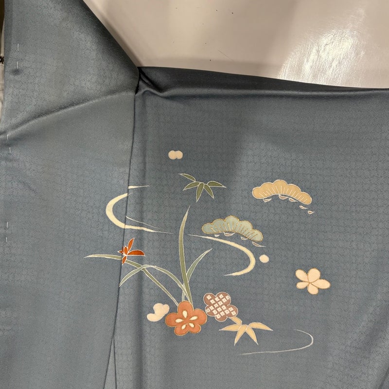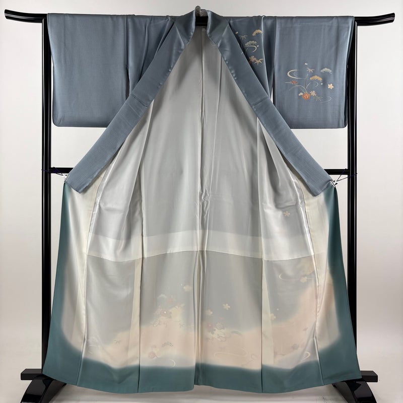 【訪問着】 灰色系 青灰色 秀品 C 約160cm~約169cm 裄丈65cm (M)size 袖丈49cm 7990-9980 二万以下