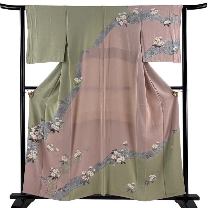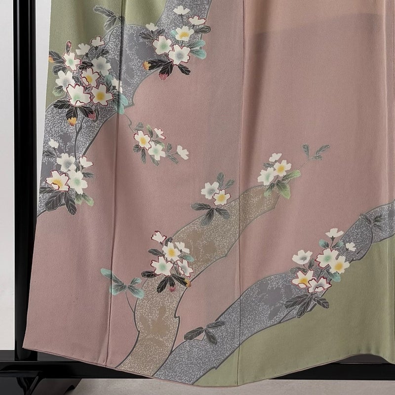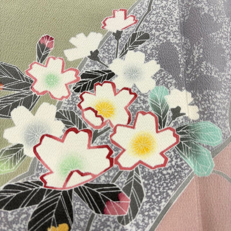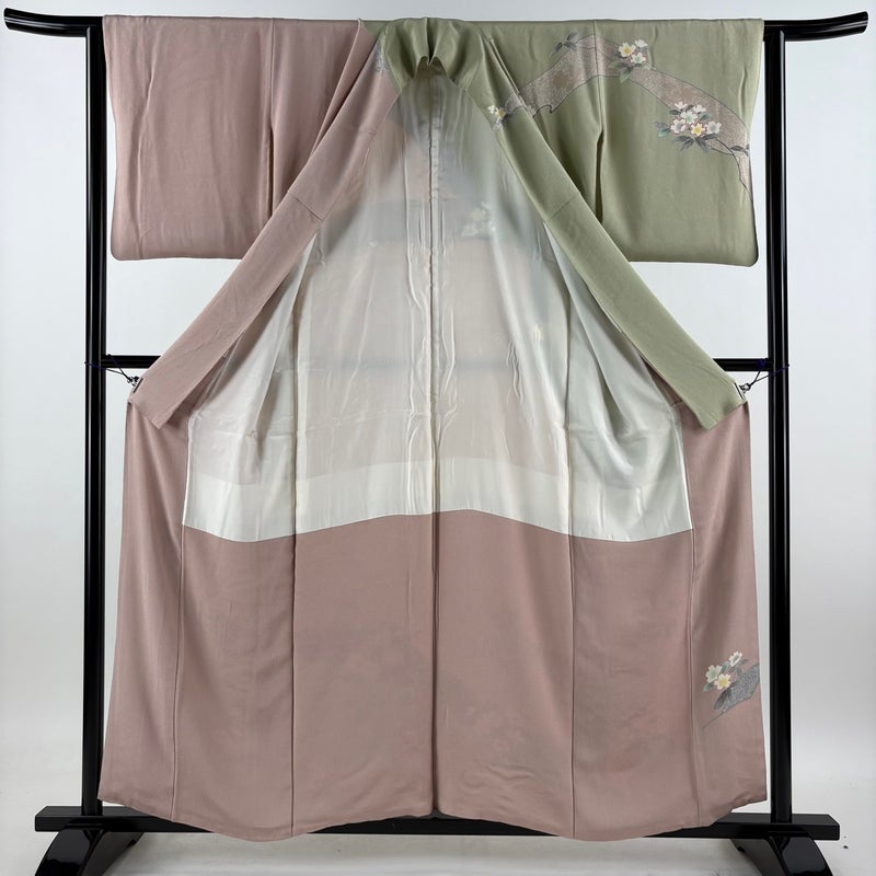 【訪問着】 灰色系 灰緑 秀品 B 約150cm~約159cm 裄丈63cm-64cm (S)size 袖丈48cm 7990-9980 二万以下