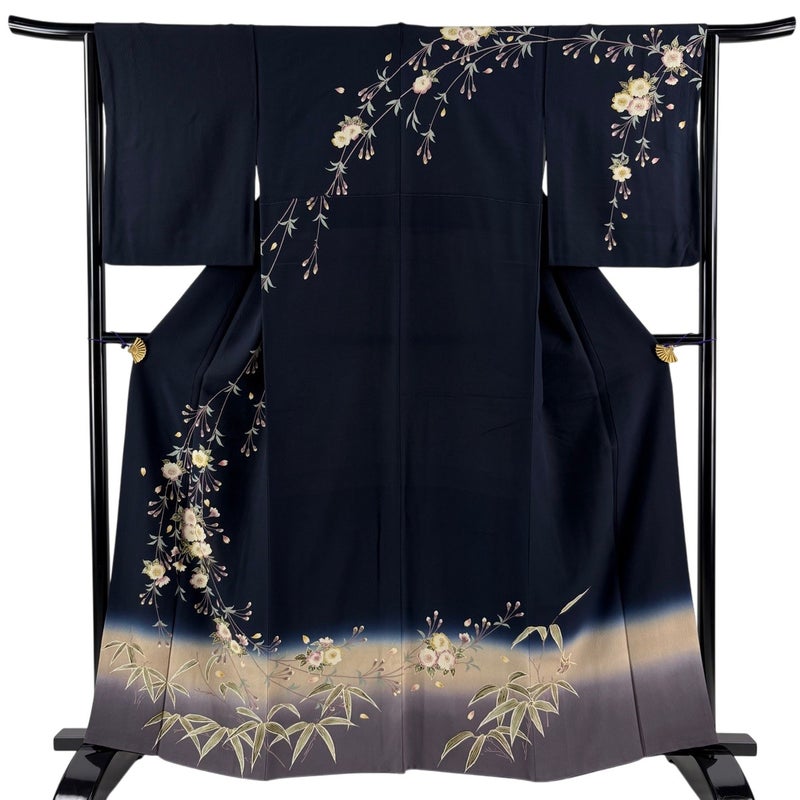 【着物ランク】名品 【素材】正絹 【身丈】約161.5cm 【裄丈】約63cm 【袖丈】約52cm 【袖幅】約33.5cm 【前幅】約24.5cm 【後幅】約31cm 【サイズ】S 【着物仕立て】袷 【着用時期】10~5月 【状態ランク】ランクB 【着物着用シーン】披露宴、パーティー、お見合い、式典、茶会