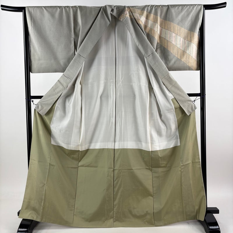 【訪問着】 灰色系 灰緑 名品 B 約160cm~約169cm 裄丈65cm (M)size 袖丈49cm 9990-29990 二万以下