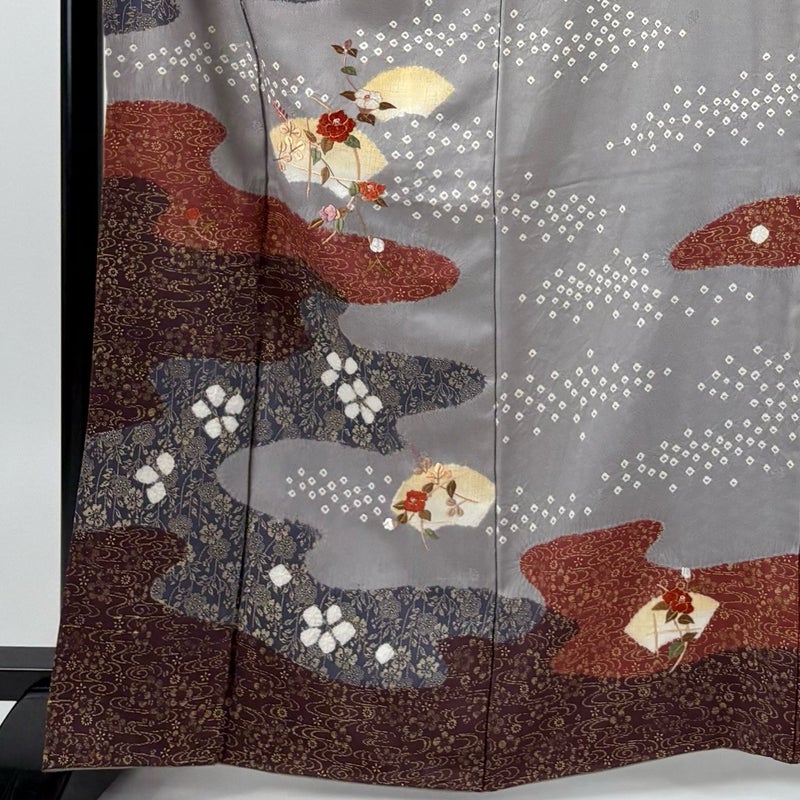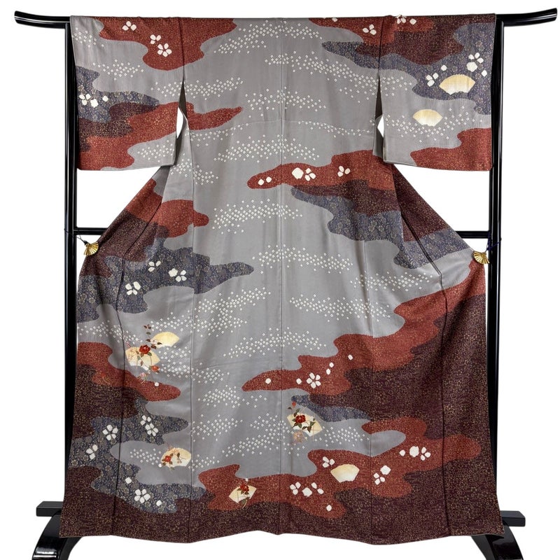 【訪問着】 灰色系 灰色 秀品 B 約160cm~約169cm 裄丈65cm (M)size 袖丈48cm 7990-9980 二万以下