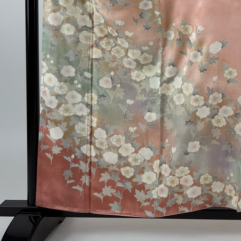 【着物ランク】秀品 【素材】正絹 【身丈】約157.5cm 【裄丈】約63cm 【袖丈】約55.5cm 【袖幅】約32.5cm 【前幅】約22.5cm 【後幅】約29cm 【サイズ】S 【着物仕立て】袷 【着用時期】10~5月 【状態ランク】ランクB 【着物着用シーン】披露宴、パーティー、お見合い、式典、茶会