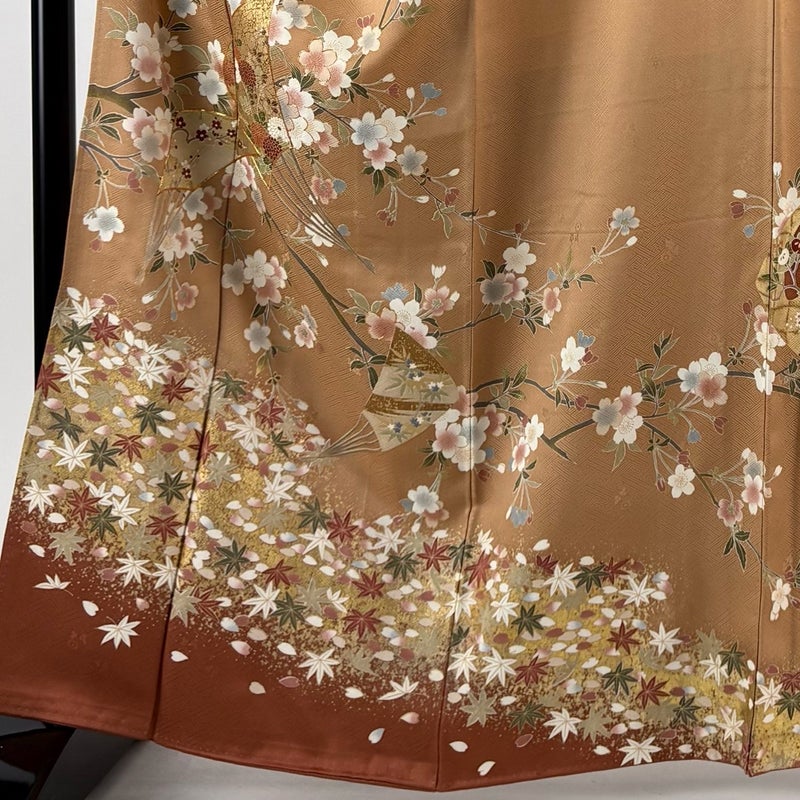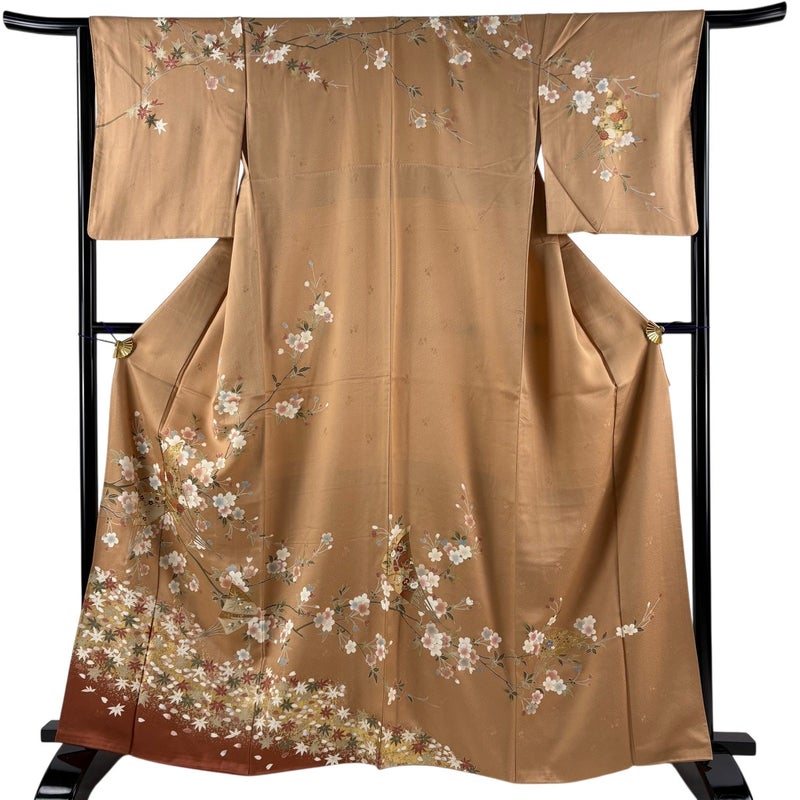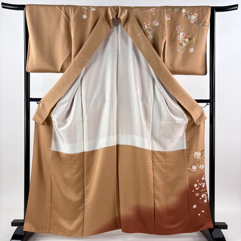 【訪問着】 茶系 薄茶色 秀品 B 約160cm~約169cm 裄丈63cm-64cm (M)size 袖丈49cm 7990-9980 二万以下