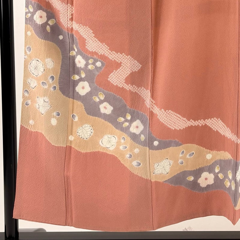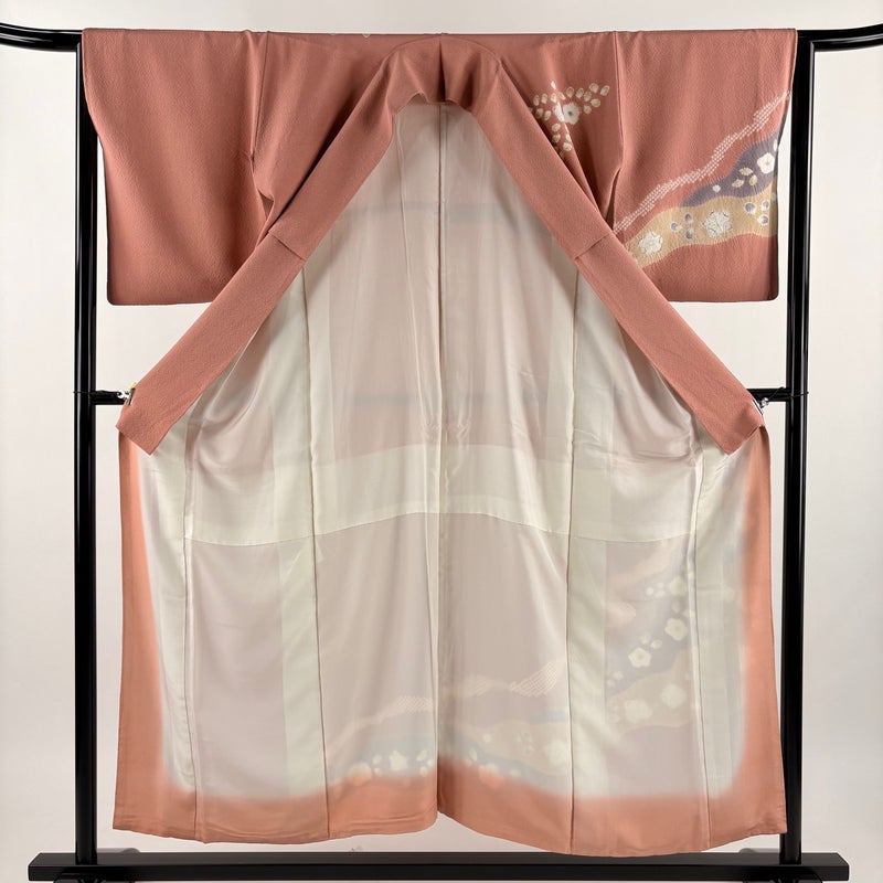 【訪問着】 赤系 ピンクベージュ 秀品 B 約150cm~約159cm 裄丈65cm (M)size 袖丈50cm-60cm 7990-9980 二万以下