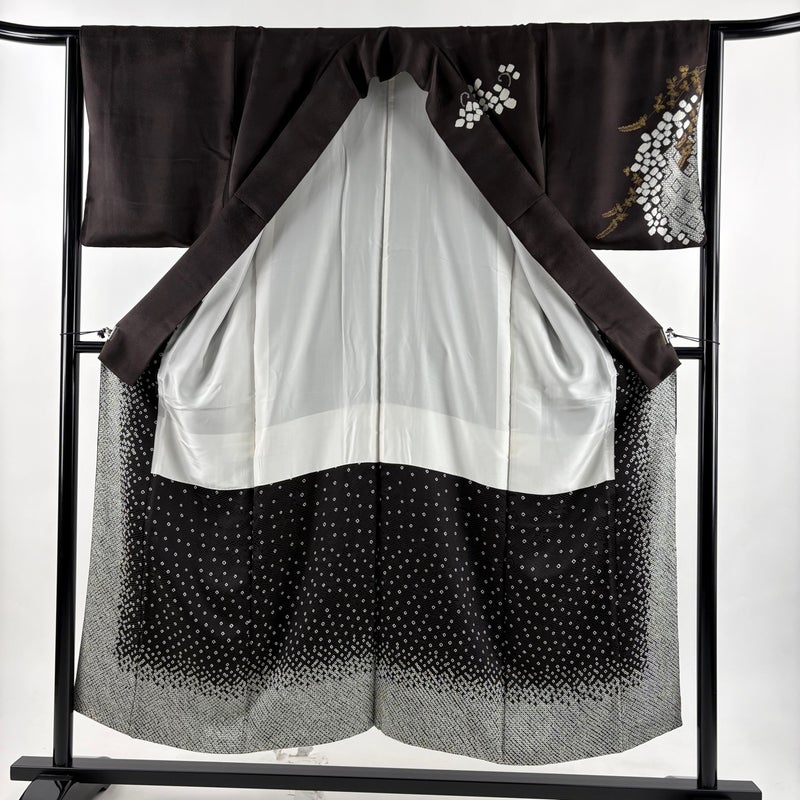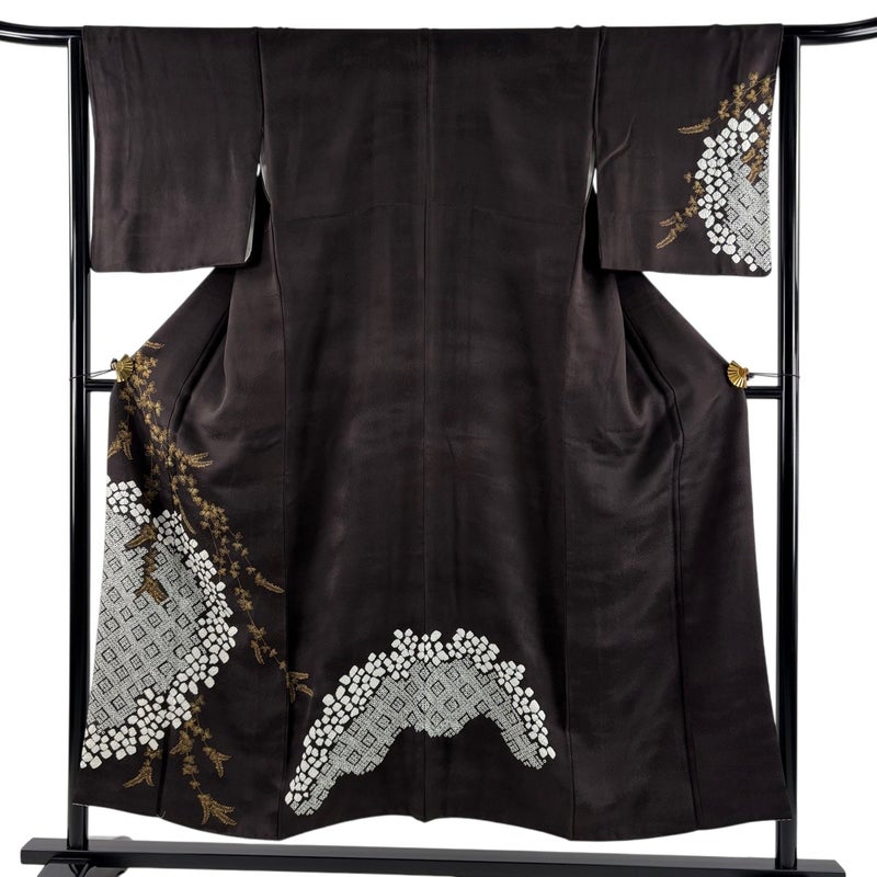 【着物ランク】秀品 【素材】正絹 【身丈】約151cm 【裄丈】約64.5cm 【袖丈】約47cm 【袖幅】約32cm 【前幅】約24cm 【後幅】約30cm 【サイズ】M 【着物仕立て】袷 【着用時期】10~5月 【状態ランク】ランクA 【着物着用シーン】披露宴、パーティー、お見合い、式典、茶会