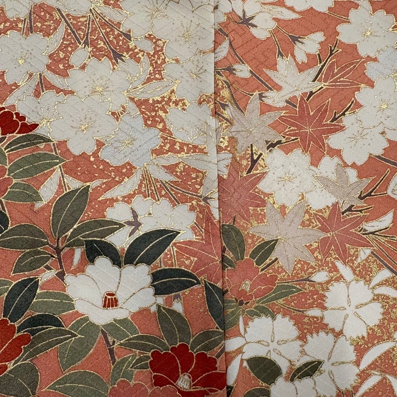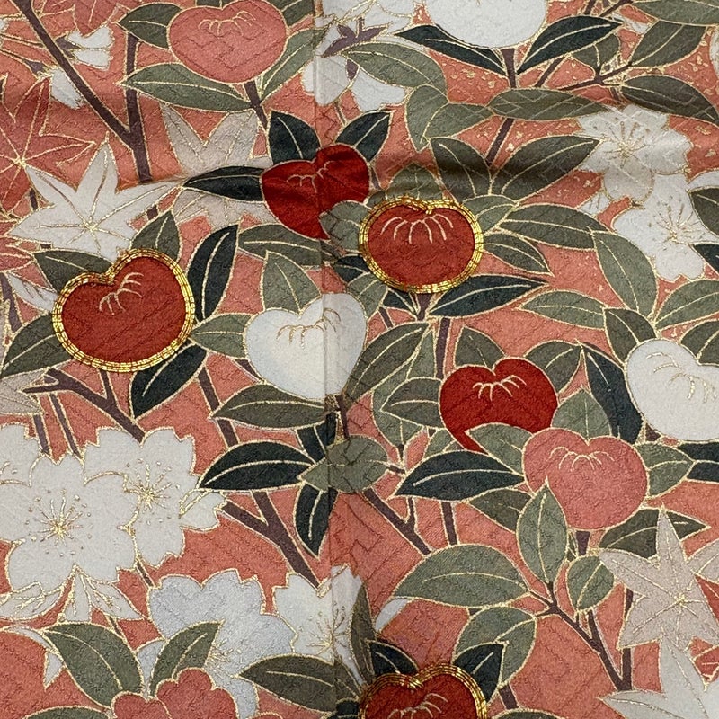 【訪問着】 赤系 サーモンピンク 秀品 B 約150cm~約159cm 裄丈63cm-64cm (M)size 袖丈48cm 7990-9980 二万以下