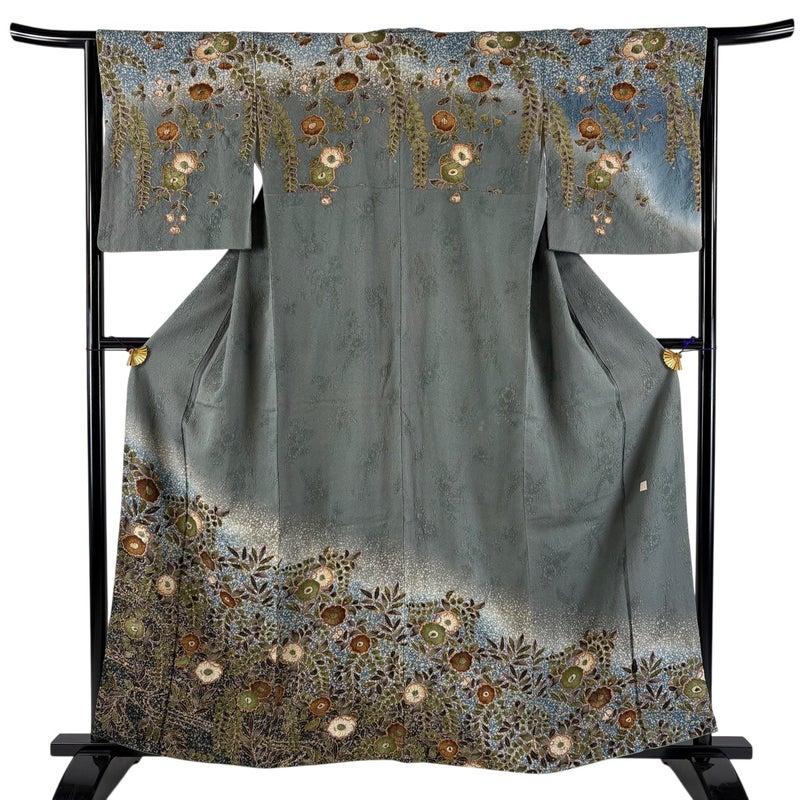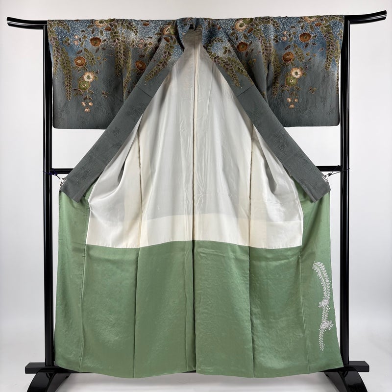 【訪問着】 灰色系 灰緑 秀品 C 約150cm~約159cm 裄丈63cm-64cm (M)size 袖丈49cm 7990-9980 二万以下