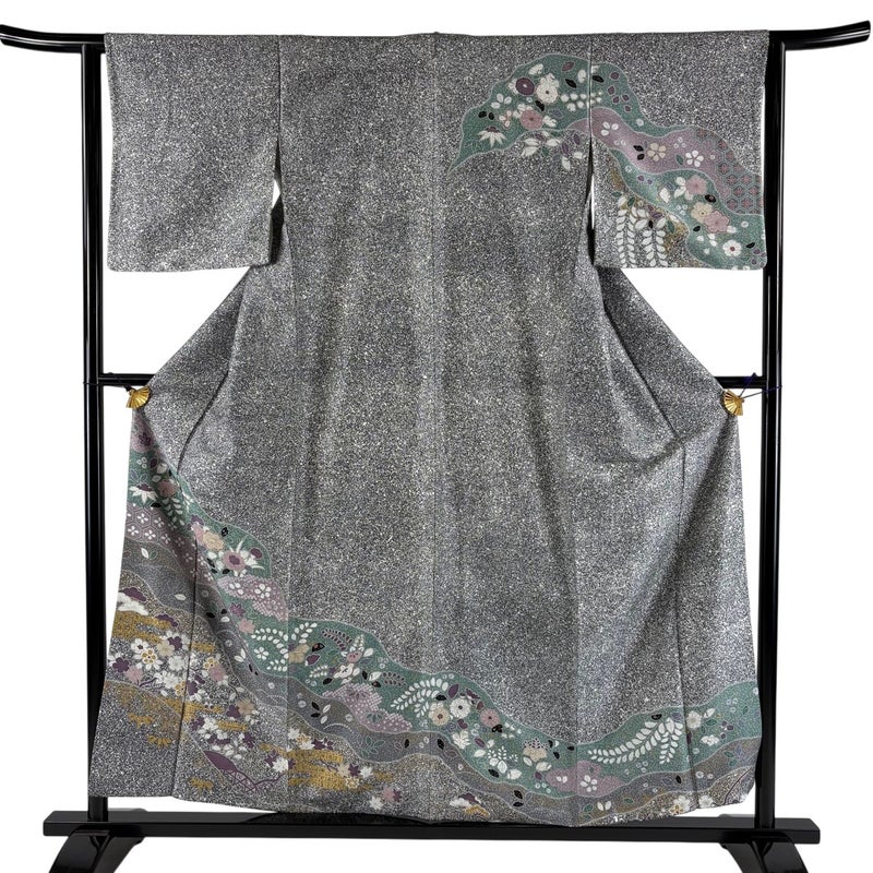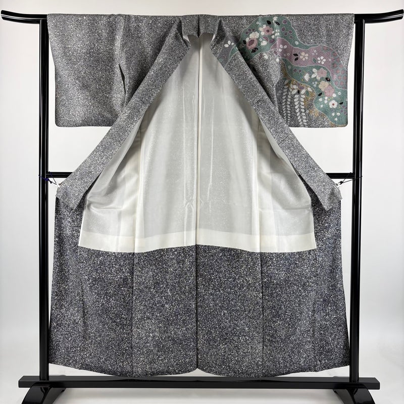 【訪問着】 灰色系 黒灰 秀品 A 約150cm~約159cm 裄丈63cm-64cm (S)size 袖丈47cm 9990-29990 美品 二万以下