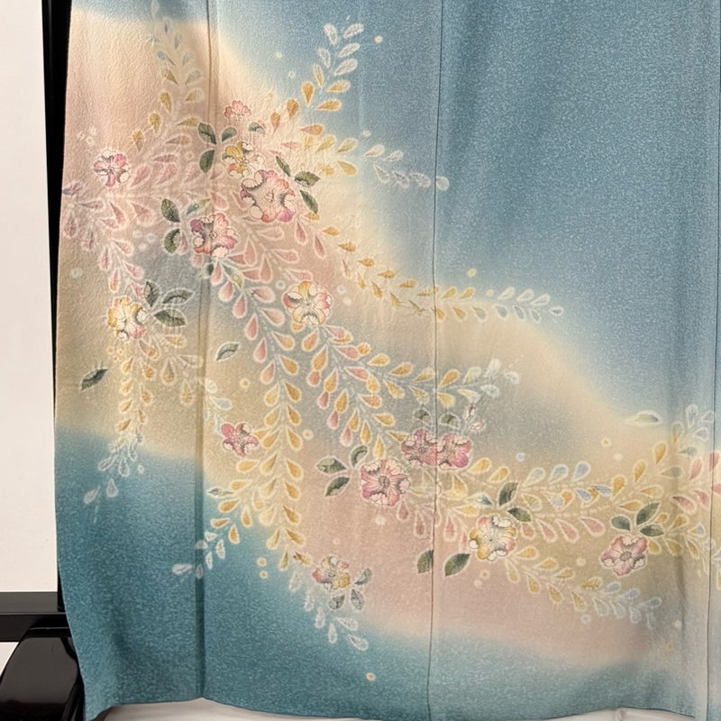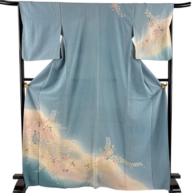 【訪問着】 青系 水色 秀品 C 約170cm~約179cm 裄丈66cm (M)size 袖丈50cm-60cm 7990-9980 二万以下