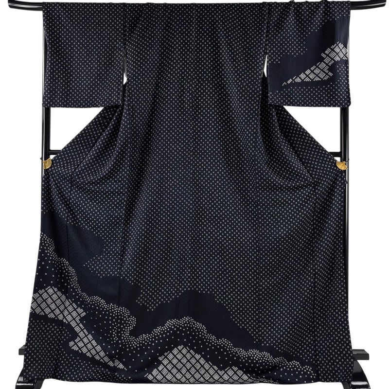【訪問着】 黒系 黒 秀品 A 約170cm~約179cm 裄丈69cm以上 (L)size 袖丈49cm 9990-29990 美品 二万以下