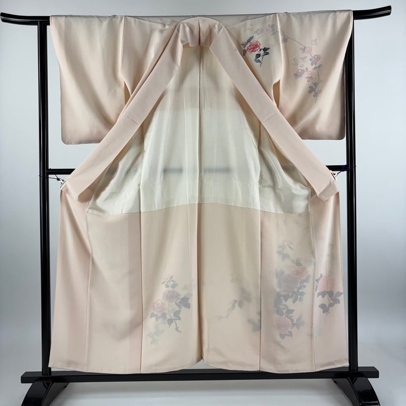 【訪問着】 赤系 薄ピンク 秀品 A 約150cm~約159cm 裄丈63cm-64cm (M)size 袖丈50cm-60cm 7990-9980 美品 二万以下