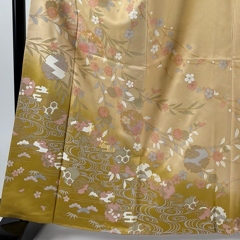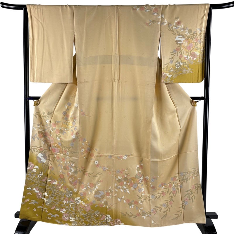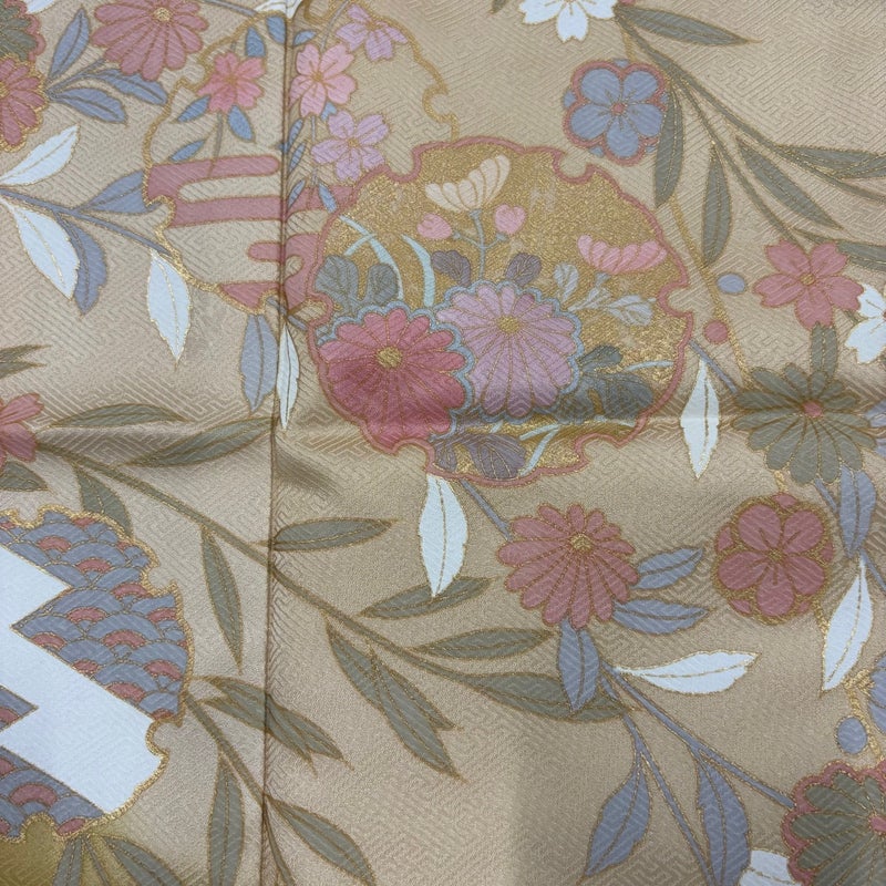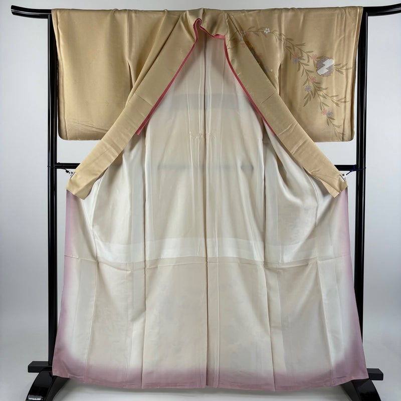 【着物ランク】秀品 【素材】正絹 【身丈】約163cm 【裄丈】約65cm 【袖丈】約56cm 【袖幅】約33cm 【前幅】約24.5cm 【後幅】約30cm 【サイズ】M 【着物仕立て】袷 【着用時期】10~5月 【状態ランク】ランクA 【着物着用シーン】披露宴、パーティー、お見合い、式典、茶会