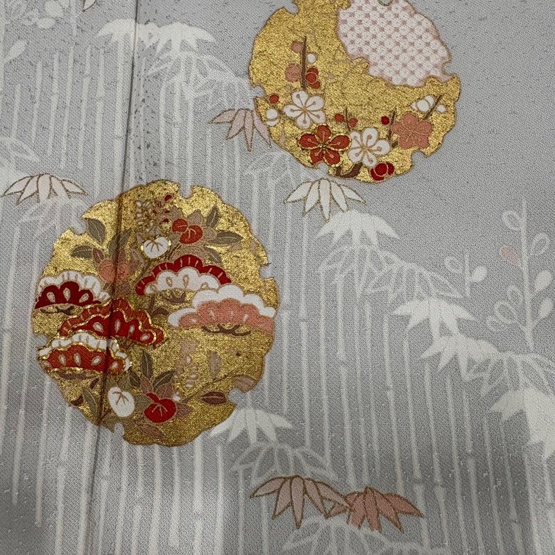 【着物ランク】秀品 【素材】正絹 【身丈】約162cm 【裄丈】約66cm 【袖丈】約48cm 【袖幅】約33cm 【前幅】約25cm 【後幅】約30cm 【サイズ】M 【着物仕立て】袷 【着用時期】10~5月 【状態ランク】ランクB 【着物着用シーン】披露宴、パーティー、お見合い、式典、茶会