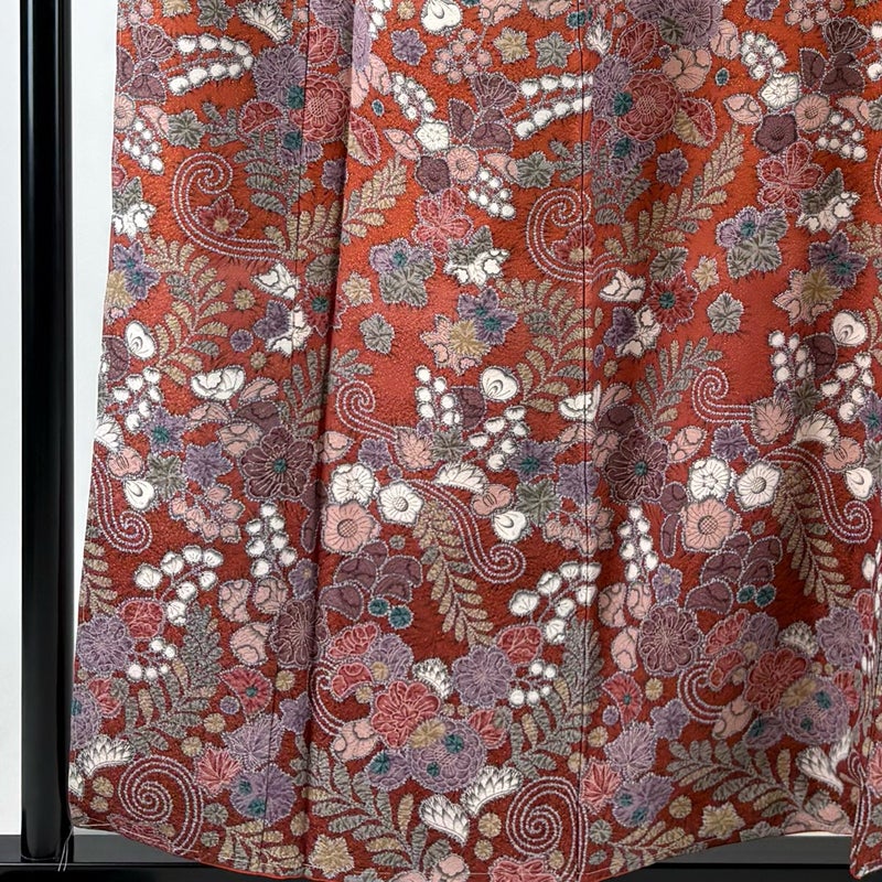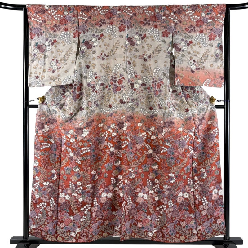 【訪問着】 赤系 茜色 秀品 A 約150cm~約159cm 裄丈63cm-64cm (M)size 袖丈50cm-60cm 9990-29990 美品 二万以下
