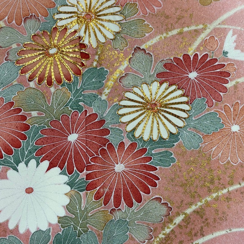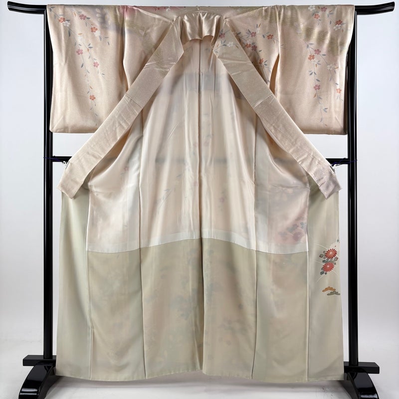 【着物ランク】秀品 【素材】正絹 【身丈】約163cm 【裄丈】約66cm 【袖丈】約57cm 【袖幅】約34cm 【前幅】約24cm 【後幅】約30.5cm 【サイズ】M 【着物仕立て】袷 【着用時期】10~5月 【状態ランク】ランクC 【着物着用シーン】披露宴、パーティー、お見合い、式典、茶会