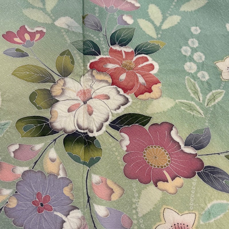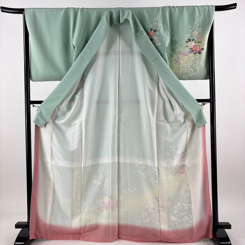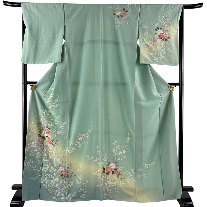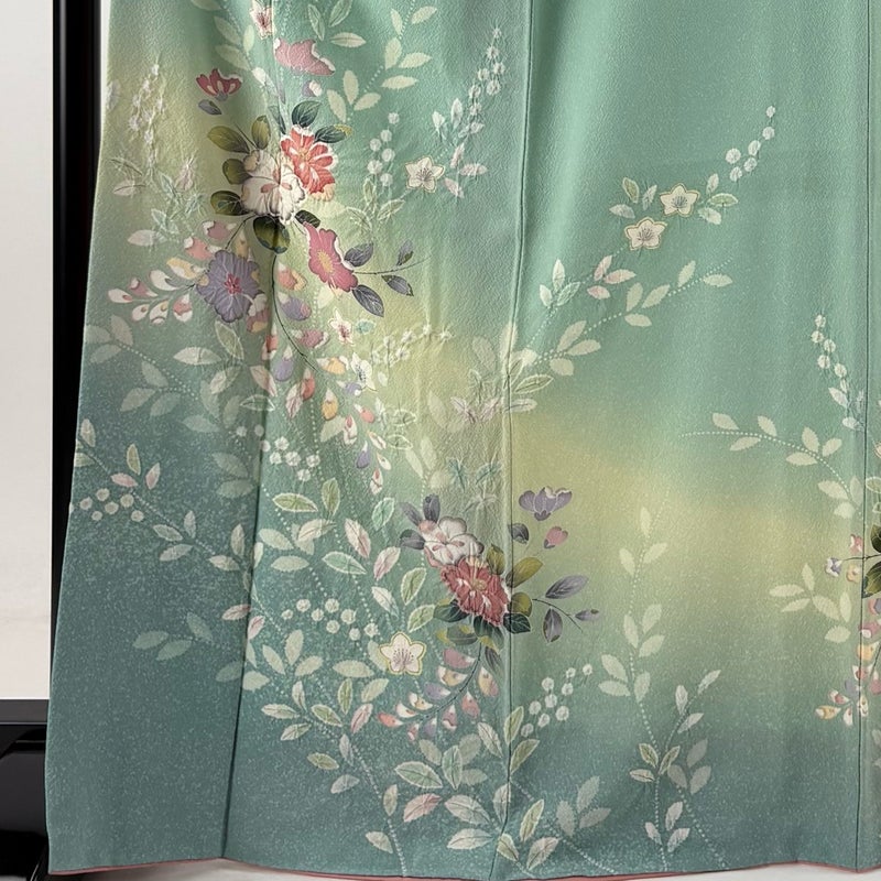 【訪問着】 緑系 薄緑 秀品 B 約160cm~約169cm 裄丈66cm (M)size 袖丈50cm-60cm 7990-9980 二万以下