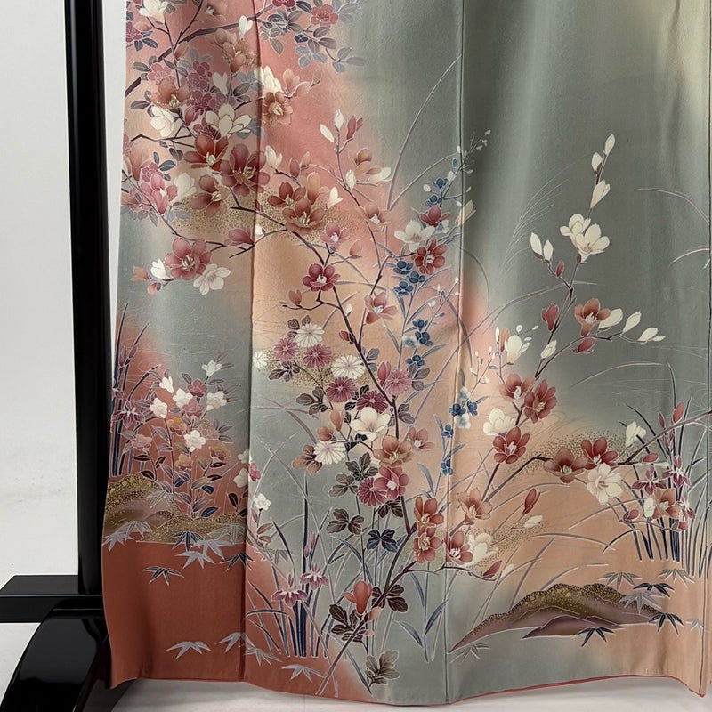 【着物ランク】秀品 【素材】正絹 【身丈】約165.5cm 【裄丈】約66.5cm 【袖丈】約50.5cm 【袖幅】約34.5cm 【前幅】約22cm 【後幅】約30cm 【サイズ】M 【着物仕立て】袷 【着用時期】10~5月 【状態ランク】ランクB 【着物着用シーン】披露宴、パーティー、お見合い、式典、茶会