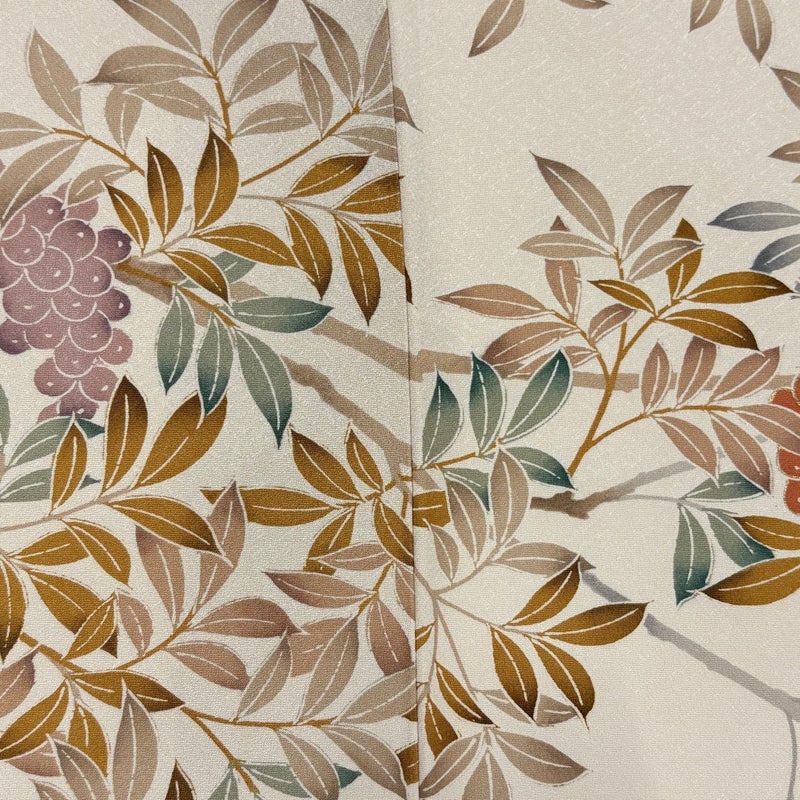 【着物ランク】秀品 【素材】正絹 【身丈】約162cm 【裄丈】約66.5cm 【袖丈】約52cm 【袖幅】約33cm 【前幅】約23.5cm 【後幅】約30cm 【サイズ】M 【着物仕立て】袷 【着用時期】10~5月 【状態ランク】ランクB 【着物着用シーン】披露宴、パーティー、お見合い、式典、茶会