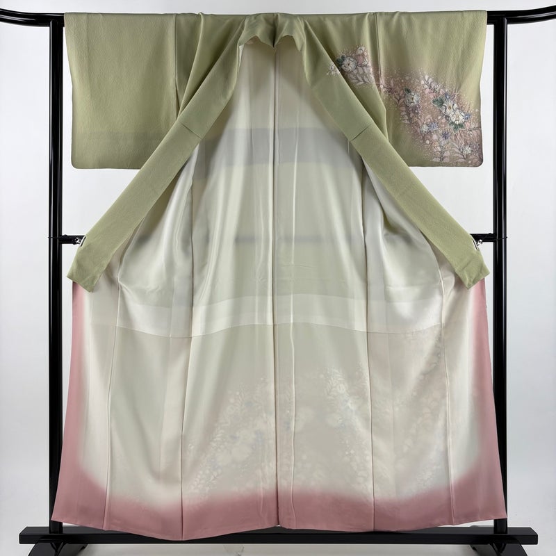 【訪問着】 緑系 抹茶色 名品 B 約150cm~約159cm 裄丈62cm以下 (S)size 袖丈46cm以下 9990-29990 二万以下