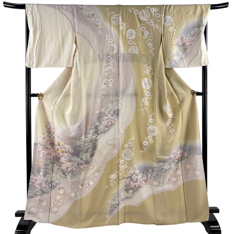 【訪問着】 白系 ベージュ 名品 B 約160cm~約169cm 裄丈67cm-68cm (L)size 袖丈48cm 9990-29990 二万以下