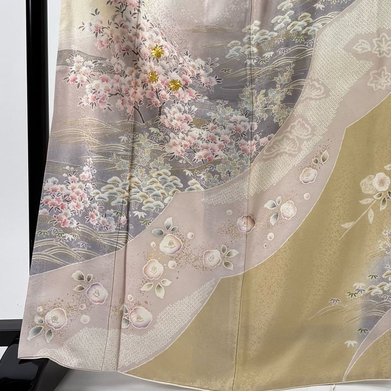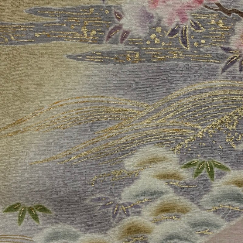 【着物ランク】名品 【素材】正絹 【身丈】約166cm 【裄丈】約67.5cm 【袖丈】約48cm 【袖幅】約35cm 【前幅】約24.5cm 【後幅】約30.5cm 【サイズ】L 【着物仕立て】袷 【着用時期】10~5月 【状態ランク】ランクB 【着物着用シーン】披露宴、パーティー、お見合い、式典、茶会