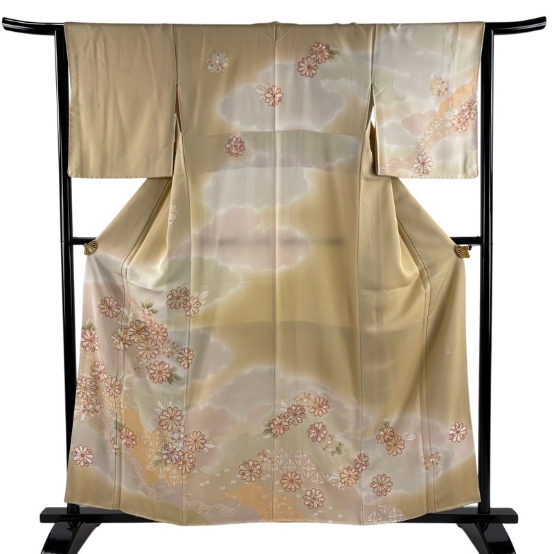 【訪問着】 白系 ベージュ 名品 A 約160cm~約169cm 裄丈63cm-64cm (M)size 袖丈49cm 9990-29990 美品 二万以下